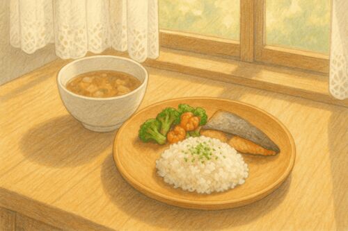 朝から落ち着かない気持ちで始まった日。 でも、昨晩のあら汁がすべてを包んでくれた。 焼き魚にブロッコリーとエビのマヨポン炒めを添えて、 静かで滋味深い朝食になった記録です。