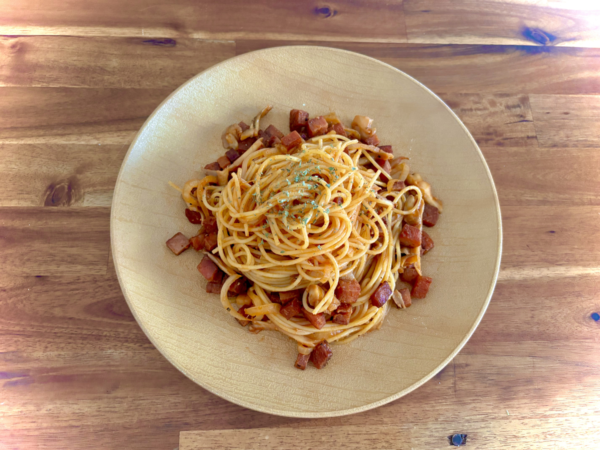 スパムとキノコのケチャップパスタ